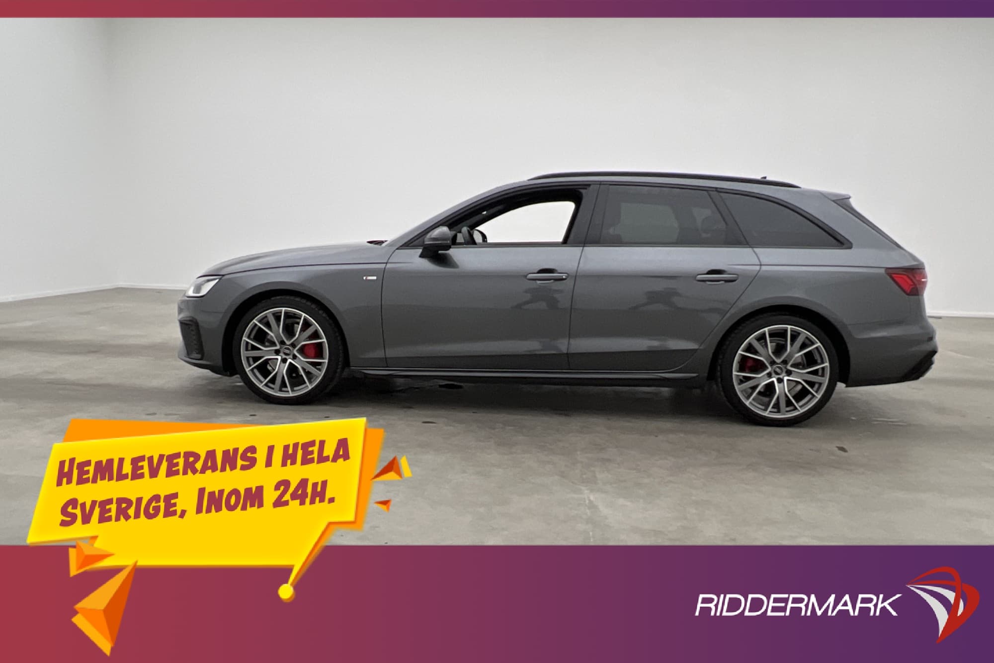 Köp din drömbil hos Riddermark Bil Täby! Välkommen till Riddermark Bil Täby- din destination för ett smidigt bilköp. Vi erbjuder ett brett utbud av kvalitetsbilar och enastående service. Besök oss på Måttbandsvägen 3A och upplev skillnaden! Leverans av din nya bil direkt till din dörr inom 24 timmar! Vi tar även hand om ditt inbyte. Vill du se mer? Kontakta oss för fler bilder och videor. Kontakta oss för mer information: Telefon: 08-572 142 35 Mejladress: taby@riddermarkbil.se Adress: Måttbandsvägen 3A, 187 66, Täby Därför ska du välja Riddermark Bil: * Störst i Sverige på begagnade bilar * Erbjuder hemleverans i hela Sverige * 14 dagars helförsäkring via Folksam * Över 10 tusen omdömen på Trustpilot * Våra bilar är testade på över 100 punkter * Kvalitetssäkrade bilar Utrustning inkluderar: • Full S-Line • Svart Optik • Matrix strålkastare • Audi virtuell cockpit • Navigation • Backkamera / Parkeringskamera • Fjärrstyrd samt tidur för dieselvärmare • Dragkrok, elektrisk infällbar • Elektrisk bagagelucka • Quattro / Fyrhjulsdrift Jämför denna bil med någon av våra andra Audi A4 i lager. Se våra bilar på https://www.riddermarkbil.se/kopa-bil/?series=a4 Övrig information om bilen: Övrig information om bilen: Vid blandad körning är förbrukning endast 0.49 l/mil Besiktigad till och med 2025-12-31 Möjlighet till 12-60 månaders garanti Servicehistorik: 2024-06-19 - 2984 mil 2025-08-14 - 4485 mil Besök https://www.riddermarkbil.se/kopa-bil/audi/dwa06g/ för att: • Se närbilder och film på bilen • Reservera bilen direkt online • Få mer info om utrustning och tillval RIDDERMARK BIL TRYGGHETSPAKET: Skydda din bil med vårt trygghetspaket. Välj mellan 12-60 månaders garanti och komplettera med extra hjuluppsättningar till bra priser. Gör ditt bilköp tryggt och enkelt hos oss. Med korta lagertider försvinner våra bilar snabbt! Ring oss idag för att reservera din bil: 08-572 142 35. Vi erbjuder även skräddarsydd finansiering och 14 dagars fri försäkring från Folksam. Se hur vi genomför våra tester här: https://vimeo.com/1011323016 Telefontider: Måndag - Söndag 08:00 - 24:00 Besökstider i butik: Måndag - Fredag 09:00 - 19:00 Lördag 10:00 - 18:00 Söndag 10:00 - 16:00 Välkomna!